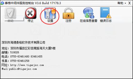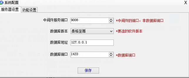 3、 安装好后,运行泰格中间件,点设置配置泰格软件的类型以及数据库地址如图:
