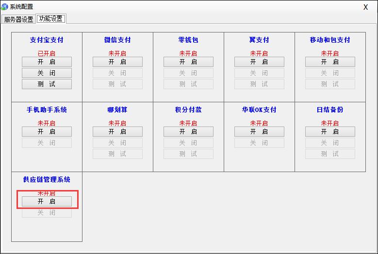 1、 点击中间件设置=》功能开启=》供应链管理系统开启管理如图: