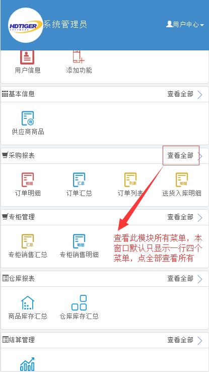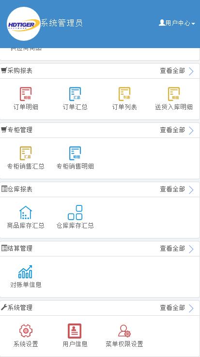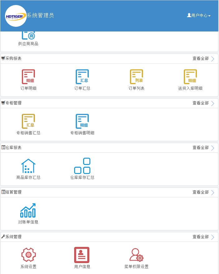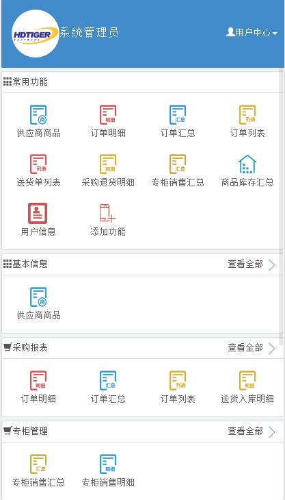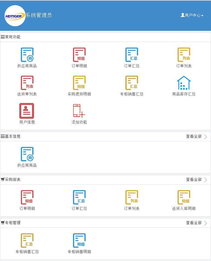 专柜管理、系统管理以及常用功能等模块构成。