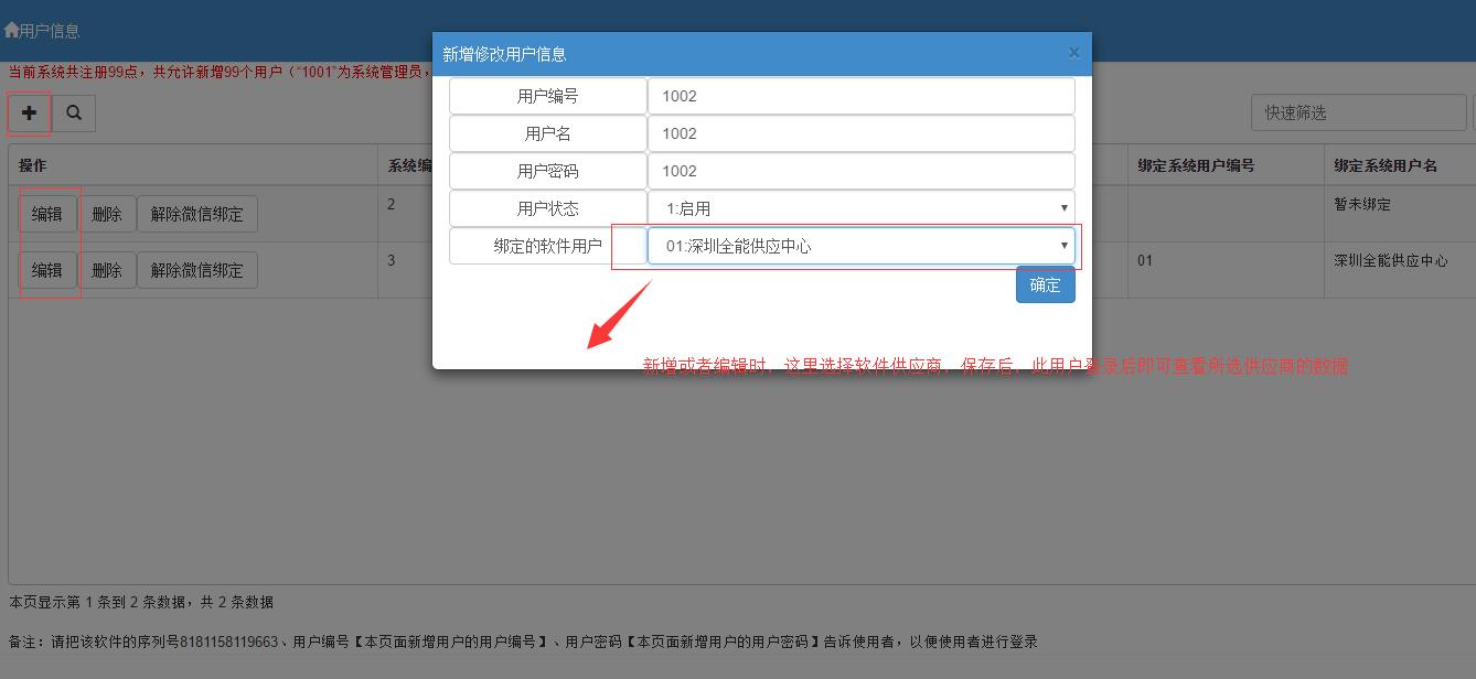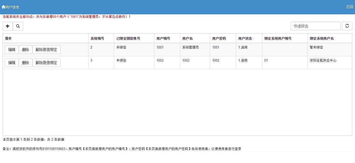 2. 同一个操作用户只能一个微信用户使用,其他微信账户如要查看,请添加新操作用户