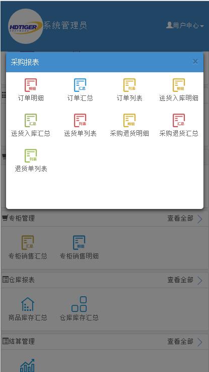 仓库报表、零售报表、结算管理、
