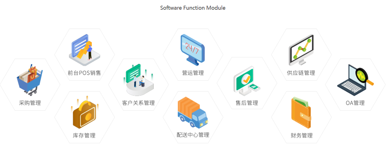 苹果、安卓手机端实现,商品新增、查询、库存、采购订单、采购收货、复核入库、盘点、巡店拍照打卡、批发,实时改价、移动销售。